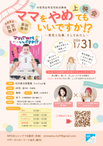 ●参加費:無料(託児も無料です)