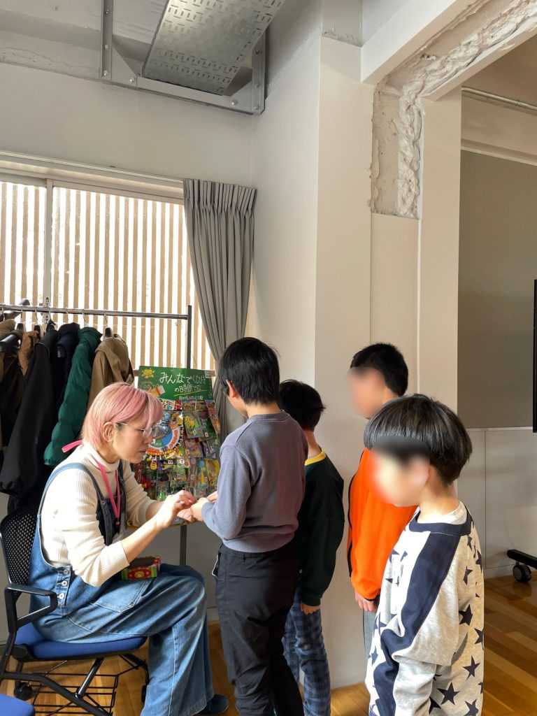 景品が並ぶと、子どもたちがわらわらと集まり大盛り上がり。自分の番をドキドキしながら待つ姿や、当たって喜ぶ笑顔に、会場全体があたたかい空気に包まれました。